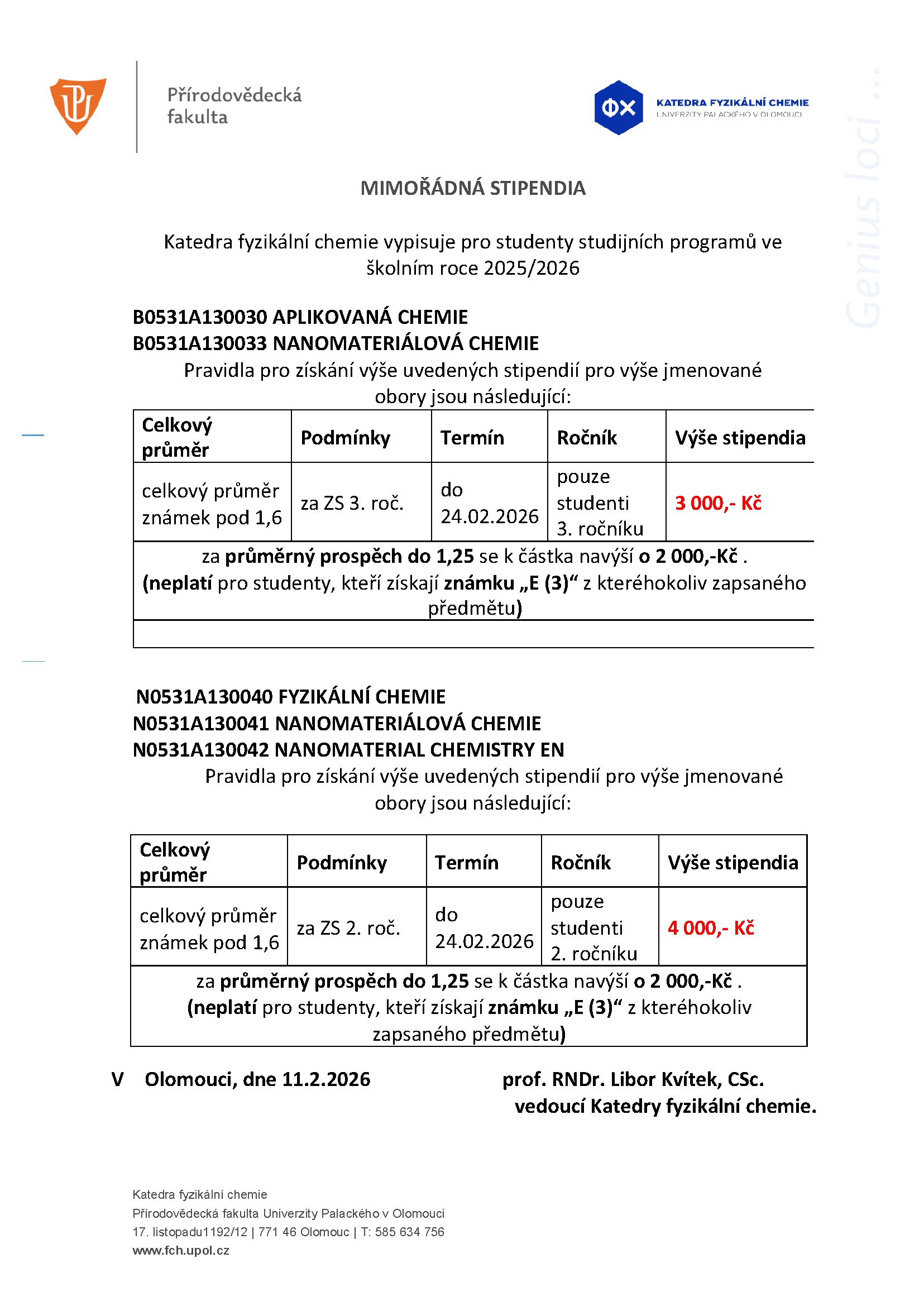 Mimořadná stipendia pro 1. ročník